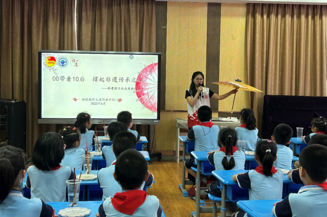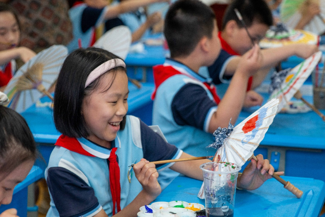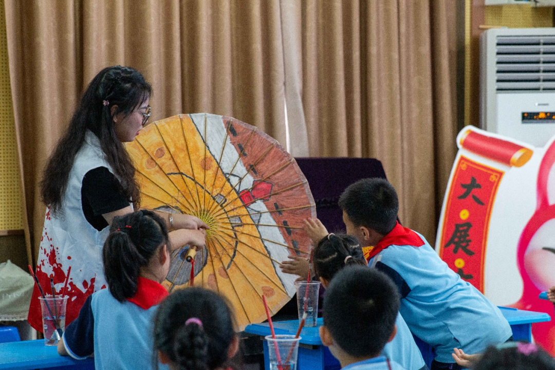 在施程小學(xué),社團(tuán)成員們將油紙傘帶進(jìn)了課堂,讓孩子們從小接觸這一傳統(tǒng)技藝,讓他們對(duì)油紙傘產(chǎn)生興趣,從而在他們心中播下傳承非遺文化的種子。