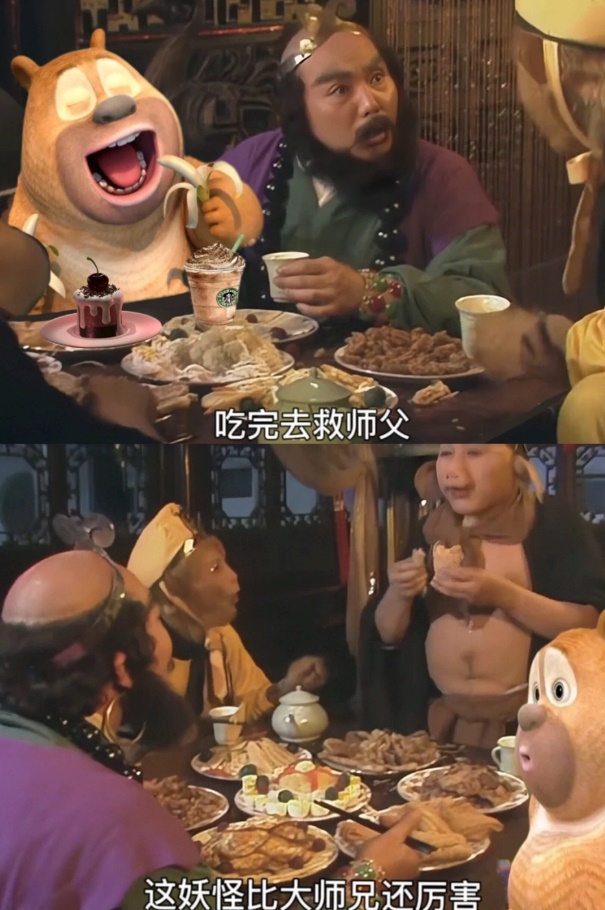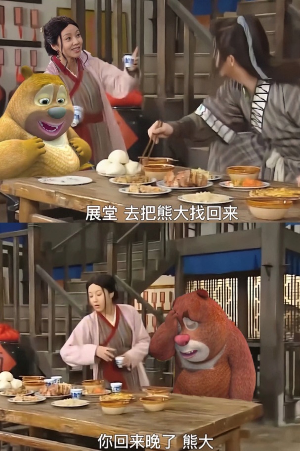 在網(wǎng)友的手下,熊二變成了自己的飯搭子、辦公搭子與上課搭子,而熊大只能在家里守家。更有甚者將熊二拉去了別的劇組~