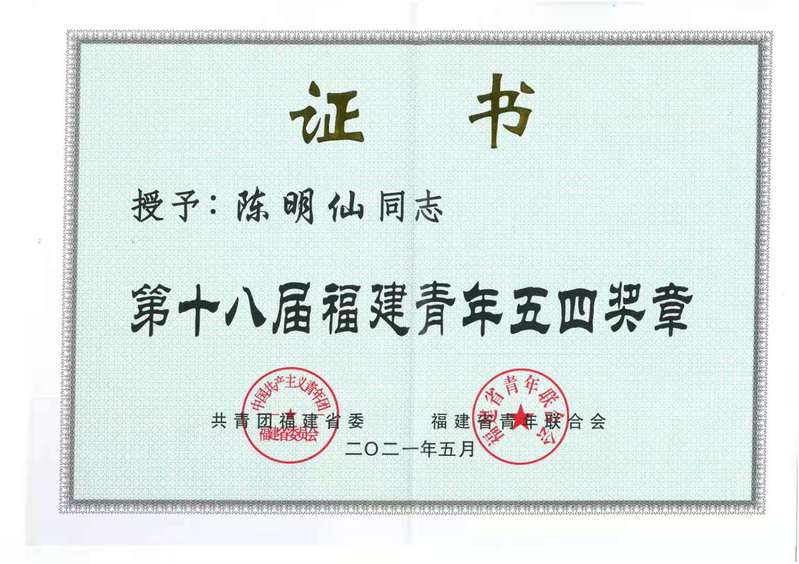 授予陳明仙同志第十八屆“福建青年五四獎?wù)隆保ㄇ嗄昕平倘瞬牛?/h1>