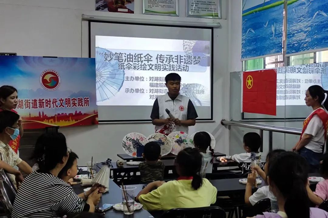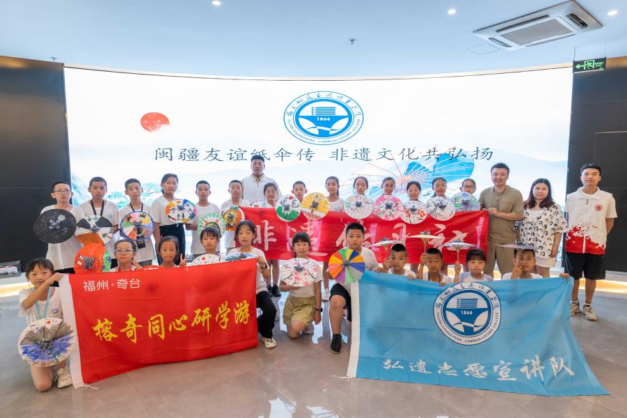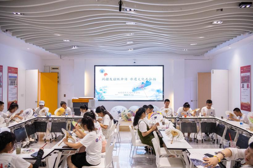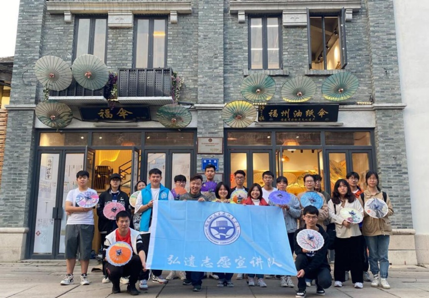 非遺傳習(xí)社弘遺志愿宣講隊成員在福州上下杭油紙傘文化體驗館實踐