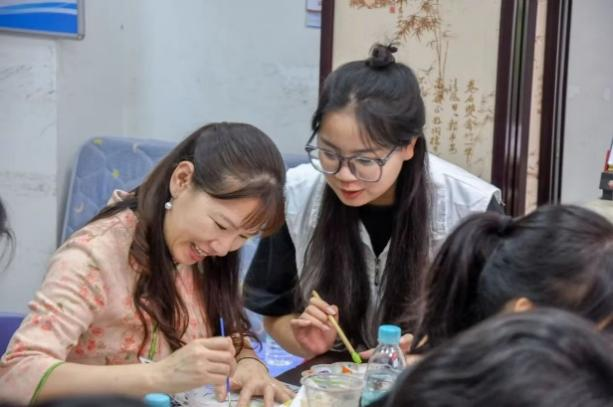 非遺傳習(xí)社社員幫助社區(qū)居民進(jìn)行非遺體驗