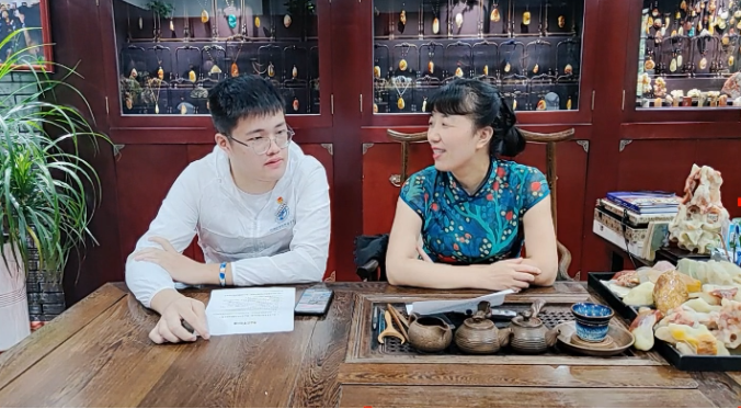非遺傳習(xí)社國情觀察實踐團(tuán)成員與壽山石雕刻非遺傳承人葉秦老師共同直播
