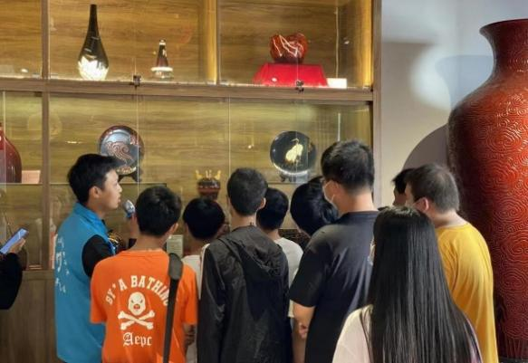 非遺傳習(xí)社社員在為游客講解福州脫胎漆器非遺文化