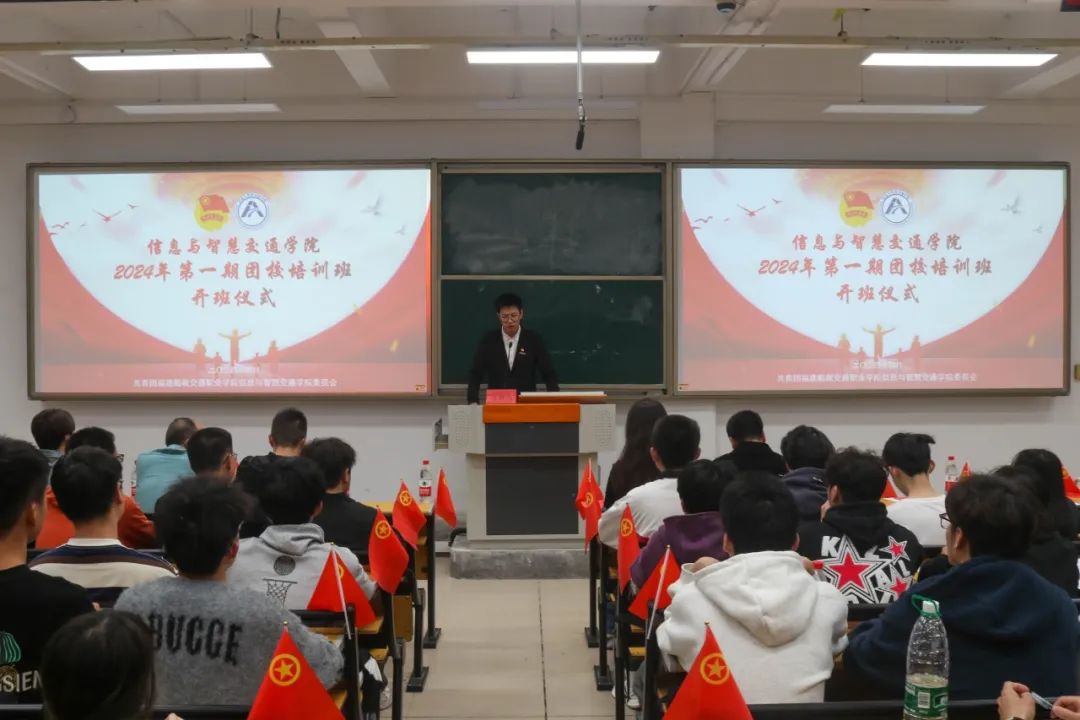 為引導廣大團員和青年學習貫徹習近平新時代中國特色社會主義思想主題教育,牢記初心使命頑強拼搏進取,奮力跑好歷史的接力棒。信息與智慧交通學院于4月8日晚上在福道園26號樓602教室開展2024年第一期團校培訓班開班儀式。