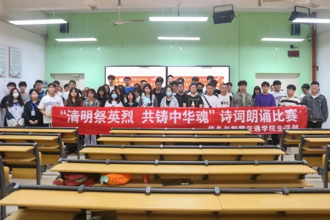 為宣揚中華優(yōu)秀傳統(tǒng)節(jié)日文化,讓同學們更深入的了解清明節(jié)所承載的文化內涵與民族情懷。信息與智慧交通學院于4月11日晚在福道園自強樓1-4開展“清明祭英烈,共鑄中華魂”詩詞朗誦比賽活動。
