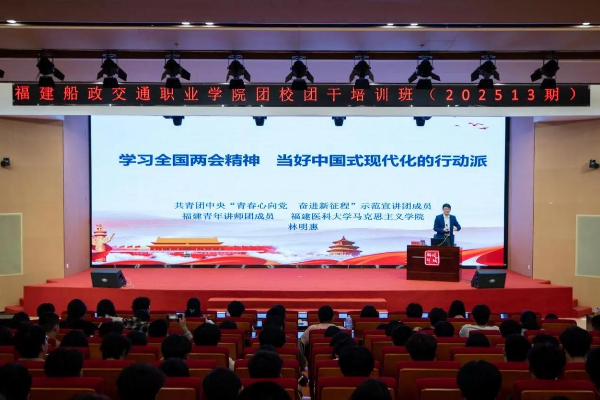 4月9日,共青團中央“青春心向黨 ,奮進新征程”示范宣講團成員、福建青年講師團成員、福建醫(yī)科大學(xué)馬克思主義學(xué)院副教授林明惠老師受邀為我院202513期福建船政職業(yè)學(xué)院團校團干培訓(xùn)班作專題講座-《學(xué)習(xí)全國兩會精神,當好中國式現(xiàn)代化的行動派》,202513期團校團干培訓(xùn)班全體成員參與。