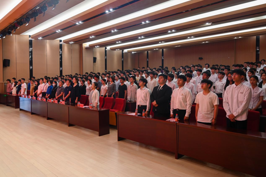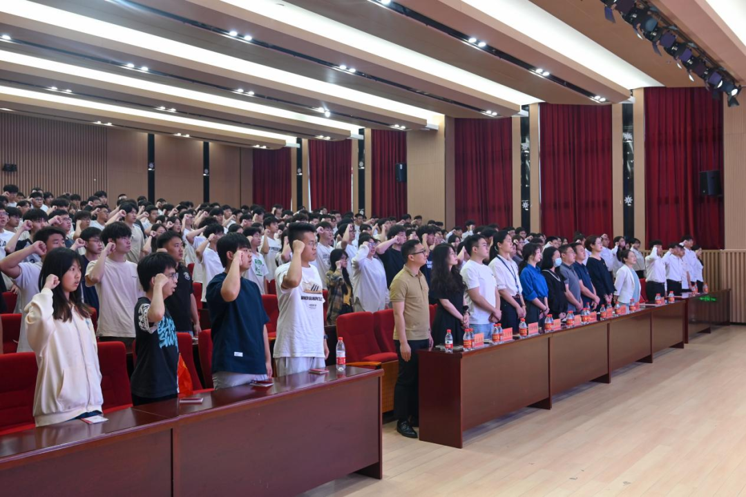 在學(xué)院團(tuán)委學(xué)生兼職副書記夏昊城同學(xué)的領(lǐng)誓下,新團(tuán)員們高舉右拳莊嚴(yán)宣誓,錚錚誓言在會(huì)場(chǎng)回蕩。這誓言將化作前行動(dòng)力,激勵(lì)新團(tuán)員們不忘初心,踐行承諾。