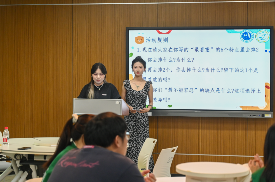 隨后,福建衛(wèi)生職業(yè)技術(shù)學(xué)院的青春健康主持人進行“人際交往與健康戀愛”活動的分享,通過逐步篩選的方式選出自己“最看重”特點,幫助參與者深度剖析自己內(nèi)心對伴侶的核心需求,明晰在戀愛伴侶選擇中真正關(guān)鍵、不可舍棄的特質(zhì),避免在戀愛中因標(biāo)準(zhǔn)模糊而盲目。