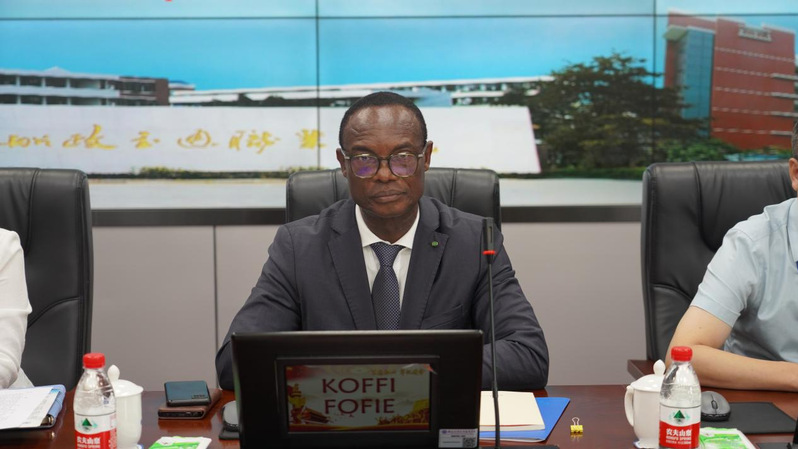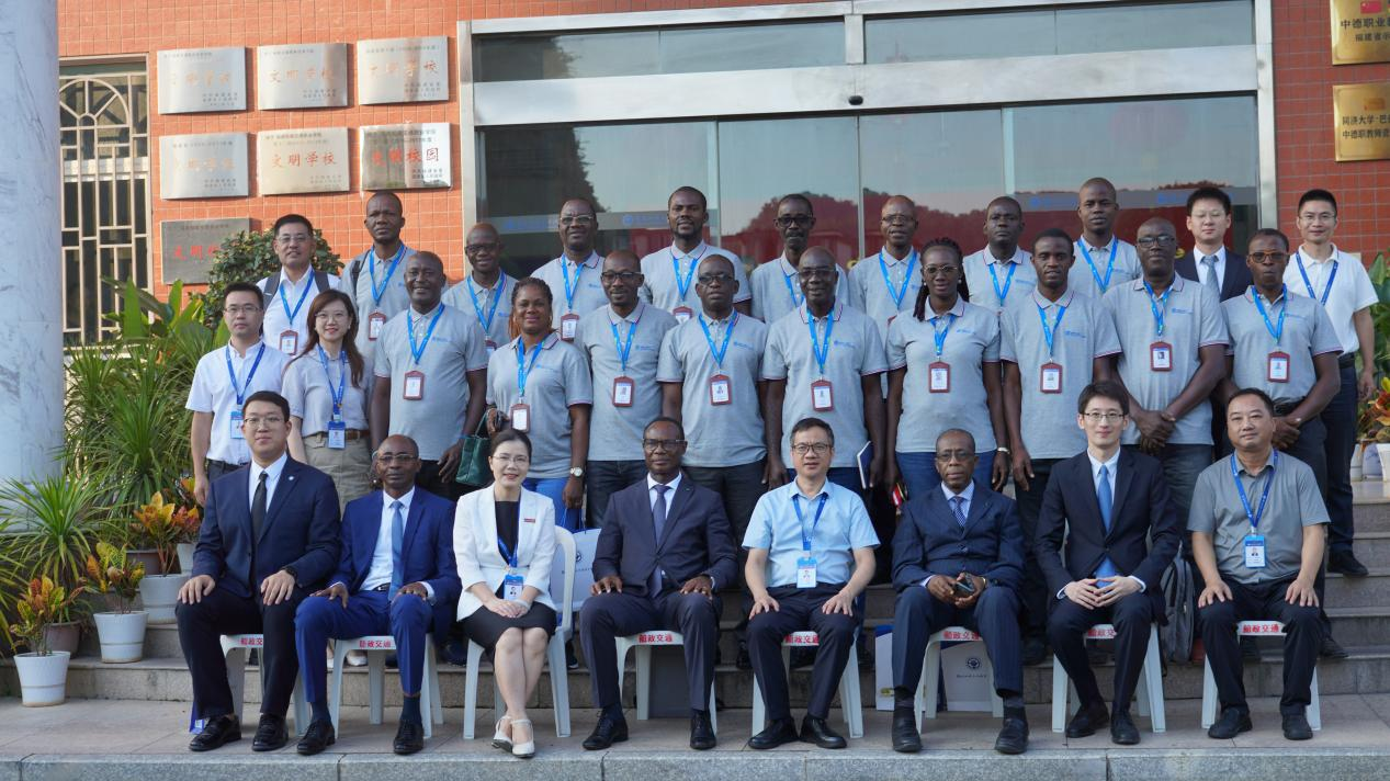 2023年9月25日下午,科特迪瓦職教項目師資培訓開班儀式在行政樓六樓會議室舉行,科特迪瓦國家教育、技術教育及職業(yè)教育部部長顧問KOFFI FOFIE(佛菲.科菲)先生、總學監(jiān)SAINY KOUAKOU KOUAME VICTOR(塞尼·古阿古·古阿梅·維克多)先生、人力司司長COULIBALY HAMIDOU (古利巴里·哈哈米杜)先生、中航國際成套設備有限公司業(yè)務四部副經理白浩、項目經理徐鉞、郭柏糧、學校黨委書記陳宜大,黨委委員、副校長陳艷紅及科特迪瓦職教項目師資培訓班17名培訓學員參加了開班儀式。教務處、科技處、對外交流中心及汽車學院等相關部門也一同參加開班儀式。開班儀式由陳艷紅副校長主持。