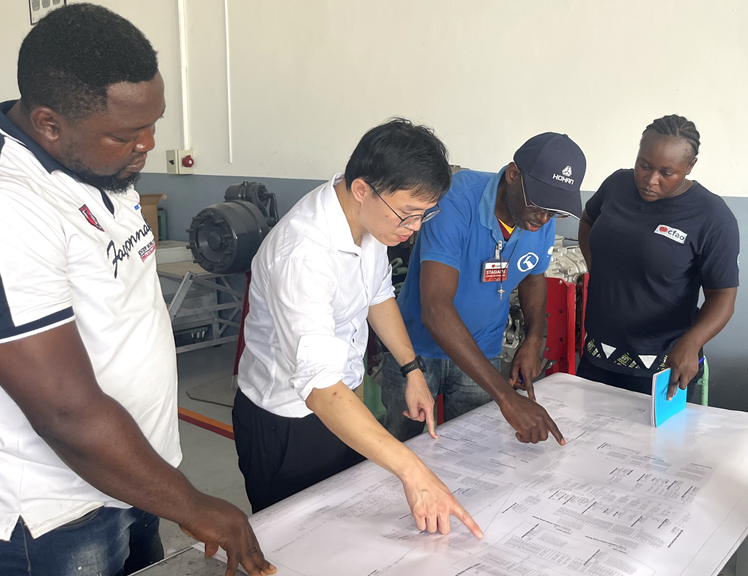 在喀麥隆期間,汽車學(xué)院教師團(tuán)隊(duì)林金海、梁霖鋒等老師將因地制宜,為喀麥隆當(dāng)?shù)貑T工開展為期3天的汽車維修理技能培訓(xùn)和職業(yè)教育,本次培訓(xùn)車型主要為金龍客車的燃油車型,未來(lái)還將進(jìn)行新能源汽車、智能網(wǎng)聯(lián)汽車等理論培訓(xùn)、實(shí)操培訓(xùn),并指導(dǎo)當(dāng)?shù)嘏嘤?xùn)中心開展實(shí)訓(xùn)基地建設(shè)。本次的培訓(xùn)成果將推廣至廈門金龍?jiān)诜侵薜貐^(qū)的所有經(jīng)銷商員工??溌 昂=z學(xué)院”的成立對(duì)CFAO公司進(jìn)一步深化國(guó)際合作,鞏固并擴(kuò)大競(jìng)爭(zhēng)優(yōu)勢(shì)具有重要意義。同時(shí),我院也期待與各方共同探索更多合作領(lǐng)域,共同推動(dòng)中非友好合作和“一帶一路”建設(shè)不斷向前發(fā)展。