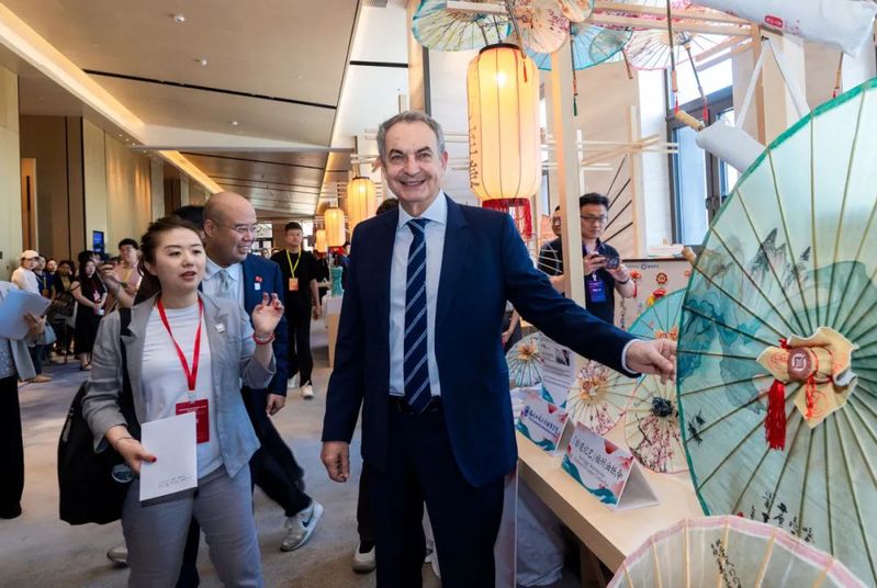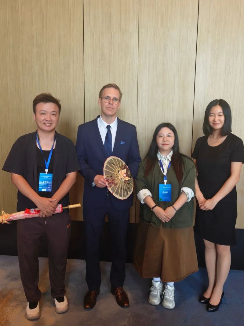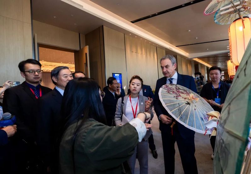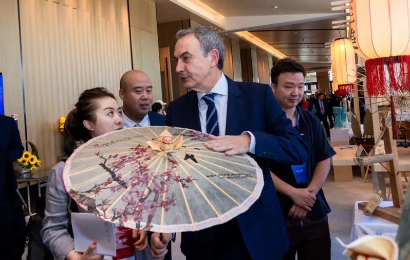 福州油紙傘不僅作為精美的藝術(shù)品被欣賞,更成為傳遞中華情誼、促進(jìn)民心相通的橋梁。我院師生將精心制作的福州油紙傘作為象征友誼與祝福的文化禮物,贈予了到訪展位的各國友人。西班牙前首相薩帕特羅先生饒有興致地欣賞了油紙傘,并欣然接受了這份蘊(yùn)含東方美意與匠心的禮物。中國歐盟協(xié)會秘書長宋敬武先生也對我院展示的福州非遺油紙傘項(xiàng)目給予了高度評價和特別關(guān)注,詳細(xì)詢問了項(xiàng)目在我院職業(yè)教育中的傳承與創(chuàng)新實(shí)踐。我院非遺傳承教育成果得到了來自與會各方的認(rèn)可,并贊譽(yù)福州非遺油紙傘為連接中歐文明的獨(dú)特信物。