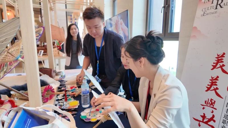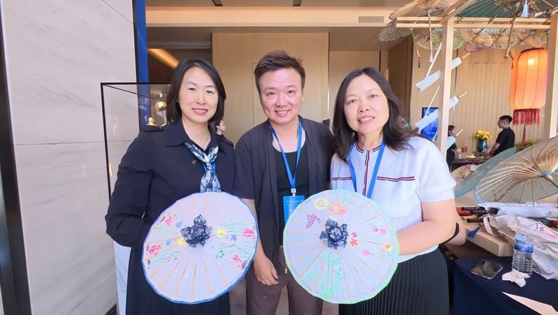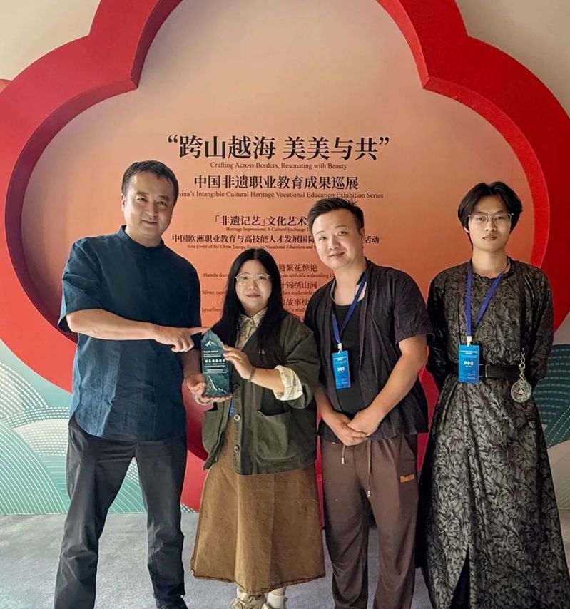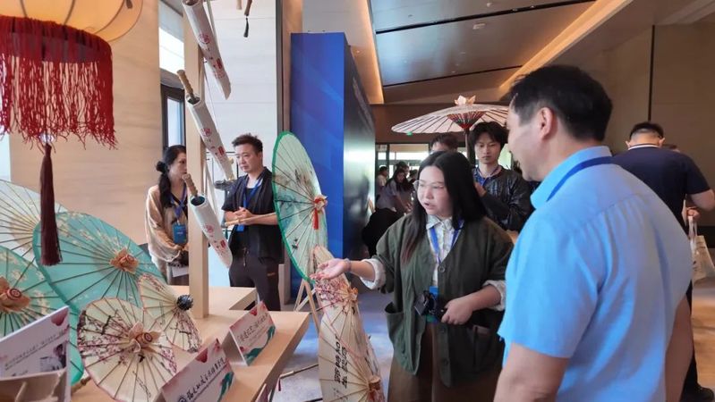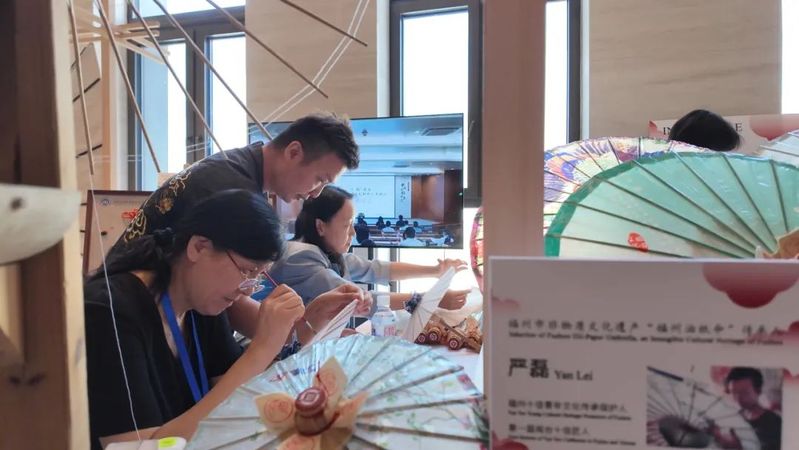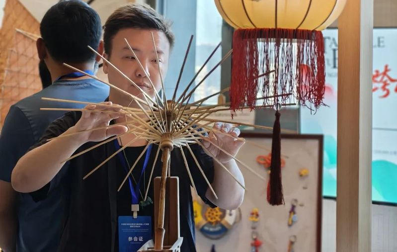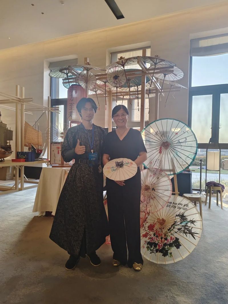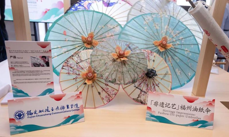 會議期間同步舉辦了“跨越山海 美美與共”中國非遺職業(yè)教育成果巡展之“非遺記藝”文化藝術(shù)交流展。我院非遺傳習(xí)社指導(dǎo)教師、通識教育學(xué)院教師林丹青與我院特聘非遺傳承人嚴(yán)磊帶領(lǐng)社團(tuán)成員攜福建省第六批省級非物質(zhì)文化遺產(chǎn)代表性項(xiàng)目——福州油紙傘制作技藝精彩亮相,成為展會上一道亮麗風(fēng)景,向世界展示了我院在非遺傳承與職業(yè)教育融合創(chuàng)新中的豐碩成果。