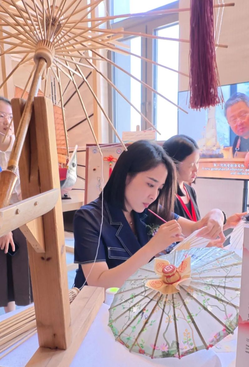 在本次職業(yè)教育國際盛會上,我院展位以“千帆共傘 大道同行”為主題?!扒Х痹醋愿=ù煌殬I(yè)學(xué)院根植的百年船政文化,象征著揚(yáng)帆遠(yuǎn)航、開拓進(jìn)取的船政精神;而“共傘”則承載著福州先民賦予福州油紙傘“為遠(yuǎn)行者遮風(fēng)擋雨、傳遞平安祝?!钡墓爬显⒁狻烧呓Y(jié)合,寓意著承載船政精神的福建船政交通職業(yè)學(xué)院,愿與世界各國友人攜手并肩,共同守護(hù)人類文化遺產(chǎn),為遠(yuǎn)行的全球伙伴撐起一片合作共贏、心意相通的天空。師生們與非遺傳承人一道,現(xiàn)場展示了福州油紙傘精湛繁復(fù)的制作技藝及其蘊(yùn)含的深厚東方智慧。一件件融合了傳統(tǒng)匠心與現(xiàn)代審美的油紙傘作品,以其獨(dú)特的藝術(shù)魅力和美好寓意,深深吸引了與會歐洲多國領(lǐng)導(dǎo)人、各職業(yè)教育協(xié)會負(fù)責(zé)人及國際友人的目光,紛紛駐足了解和體驗(yàn)。